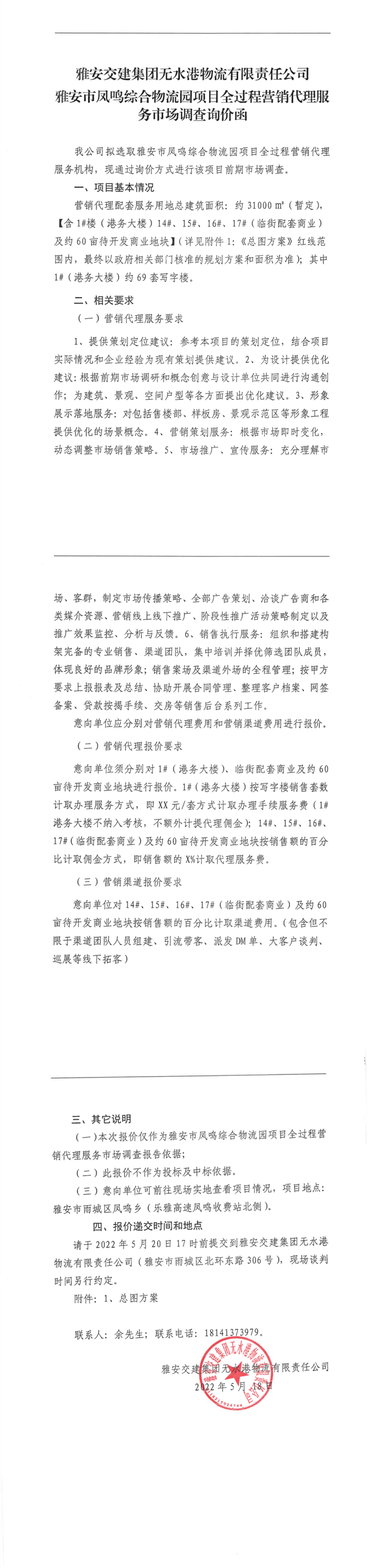 米兰体育-米兰(中国)官网 无水港物流有限责任公司雅安市凤鸣综合物流园项目全过程营销代理服务市场调查询价函