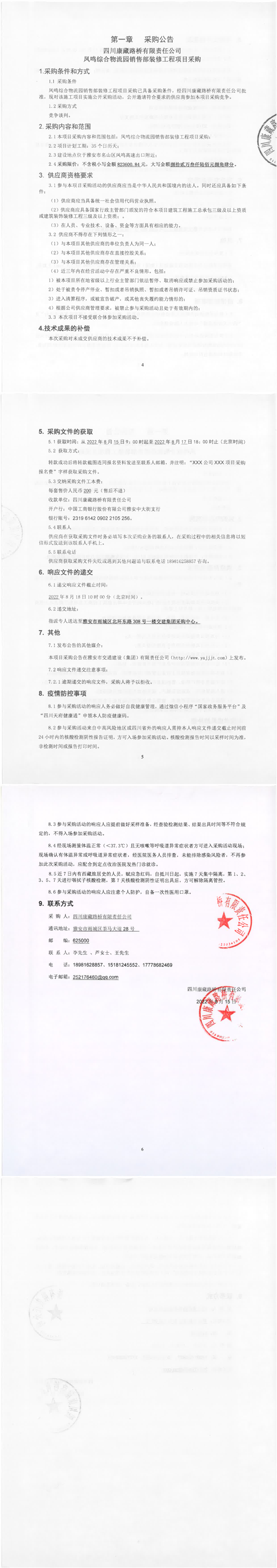 四川康藏路桥有限责任公司凤鸣综合物流园销售部装修工程项目采购公告