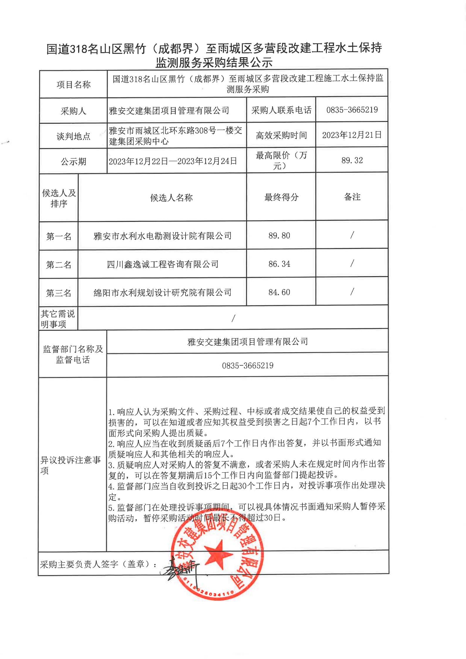 米兰体育-米兰(中国)官网 项目管理有限公司国道318名山区黑竹(成都界)至雨城区多营段改建工程水土保持监测服务采购结果公示