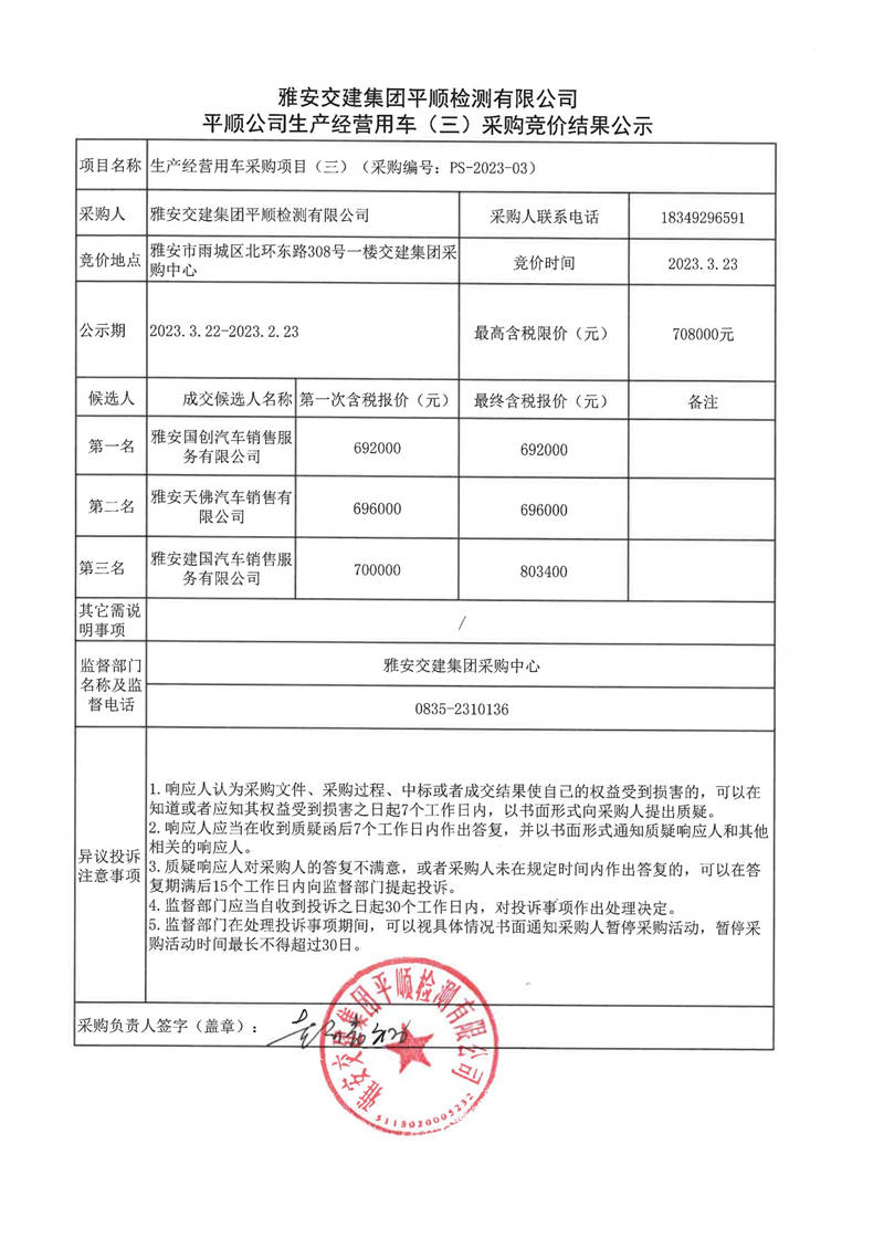米兰体育-米兰(中国)官网 平顺检测有限公司平顺公司生产经营用车(三)采购竞价结果公示