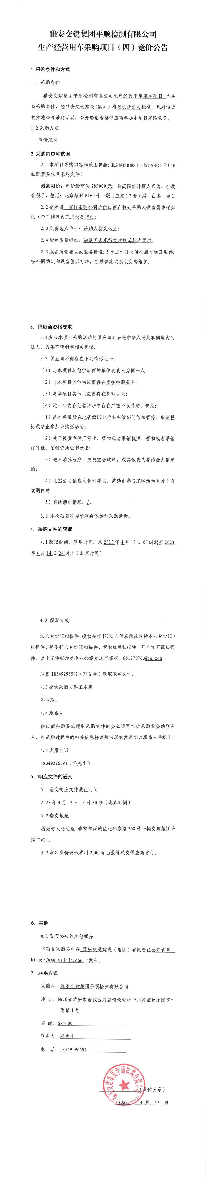 米兰体育-米兰(中国)官网 平顺检测有限公司平顺公司生产经营用车采购项目(四)竞价公告