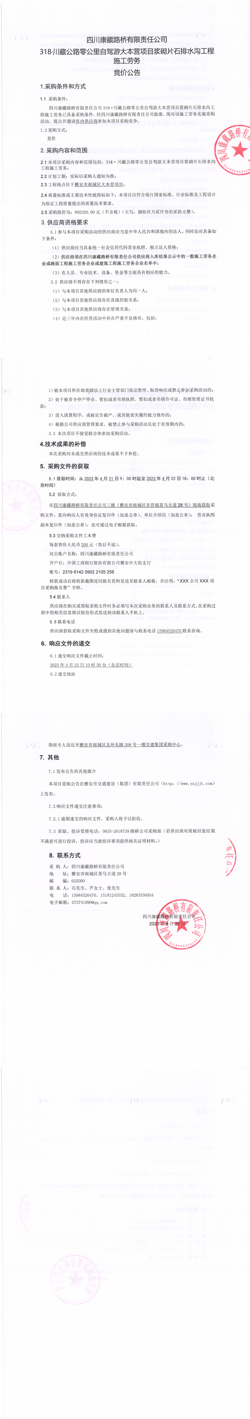 四川康藏路桥有限责任公司318·川藏公路零公里自驾游大本营项目始发广场道路、辅道、园区道路工程专业分包采购结果公示