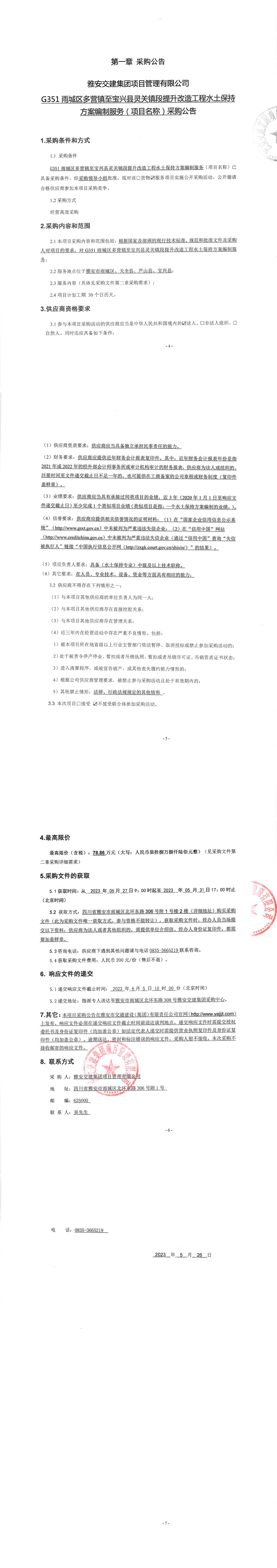 米兰体育-米兰(中国)官网 项目管理有限公司G351雨城区多营镇至宝兴县灵关镇段提升改造工程水土保持方案编制服务(项目名称)采购公告
