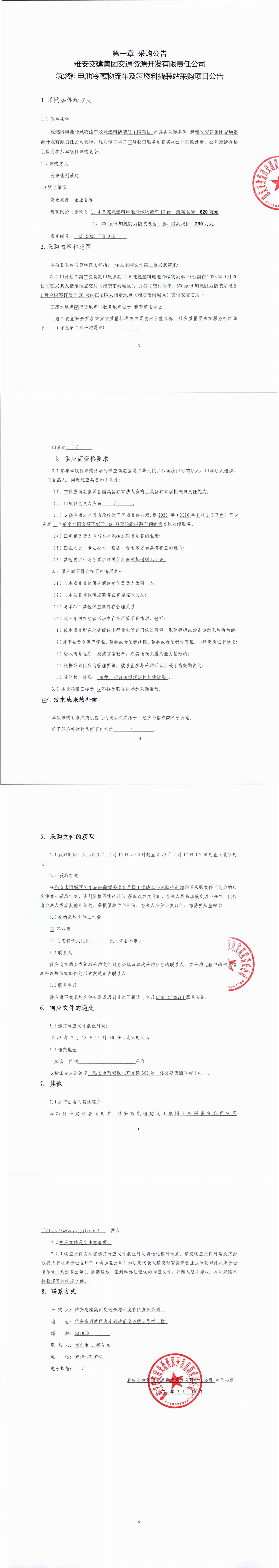 米兰体育-米兰(中国)官网 交通资源开发有限责任公司氢燃料电池冷藏物流车及氢燃料撬装站采购项目公告