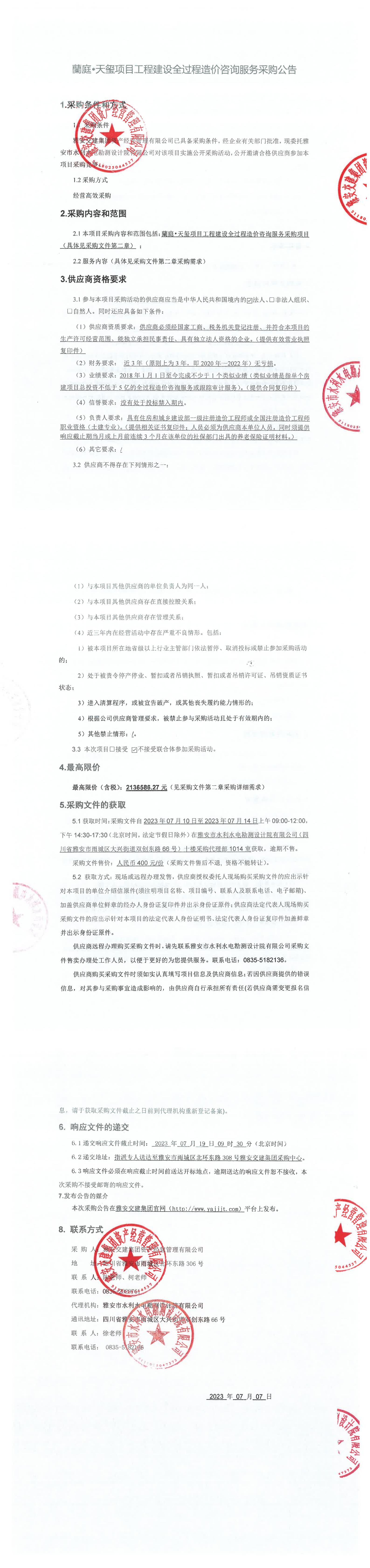 米兰体育-米兰(中国)官网 资产经营管理有限公司蘭庭•天玺项目工程建设全过程造价咨询服务采购公告
