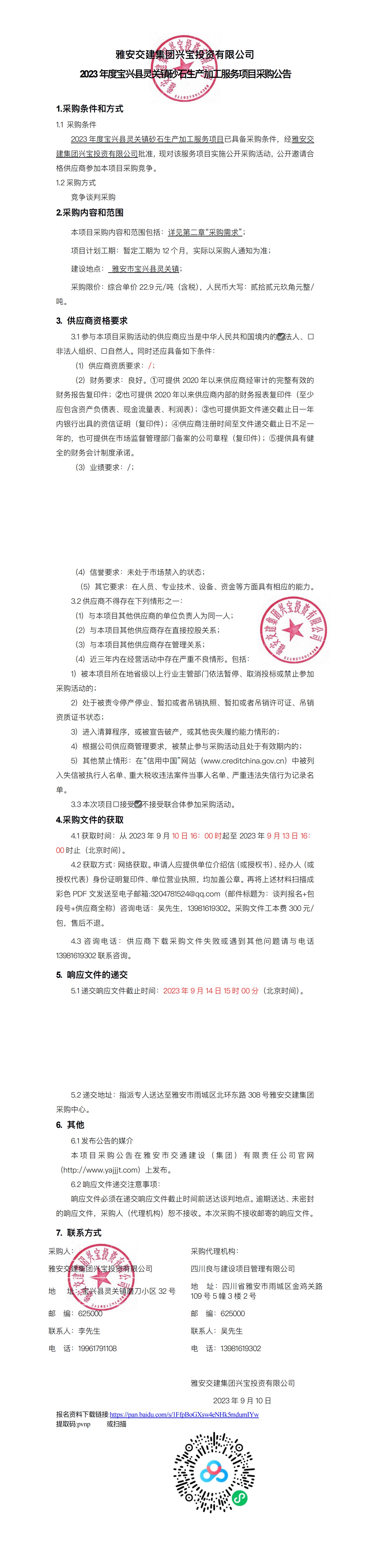 米兰体育-米兰(中国)官网 兴宝投资有限公司2023年度宝兴县灵关镇砂石生产加工服务项目采购公告