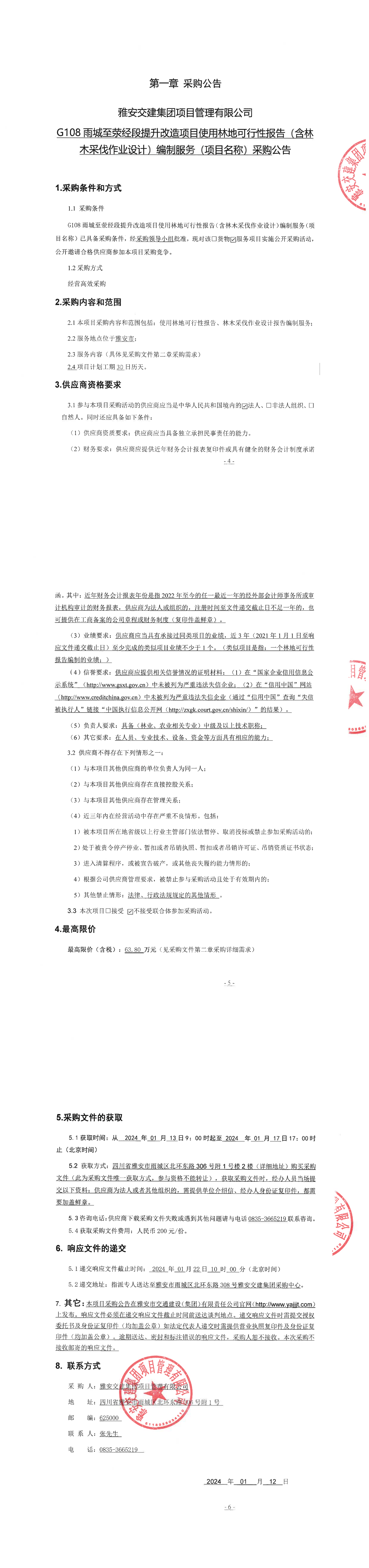 米兰体育-米兰(中国)官网 项目管理有限公司G108雨城至荥经段提升改造项目使用林地可行性报告(含林木采伐作业设计)编制服务(项目名称)采购公告