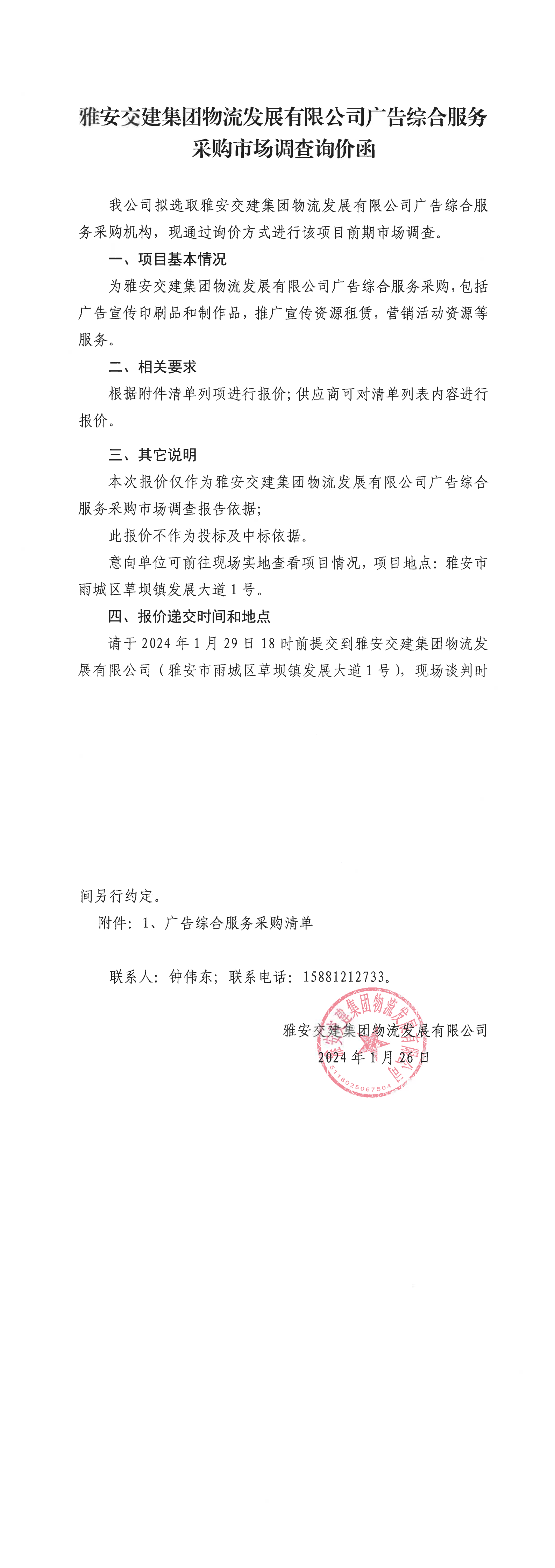 米兰体育-米兰(中国)官网 物流发展有限公司广告综合服务采购市场调查询价函