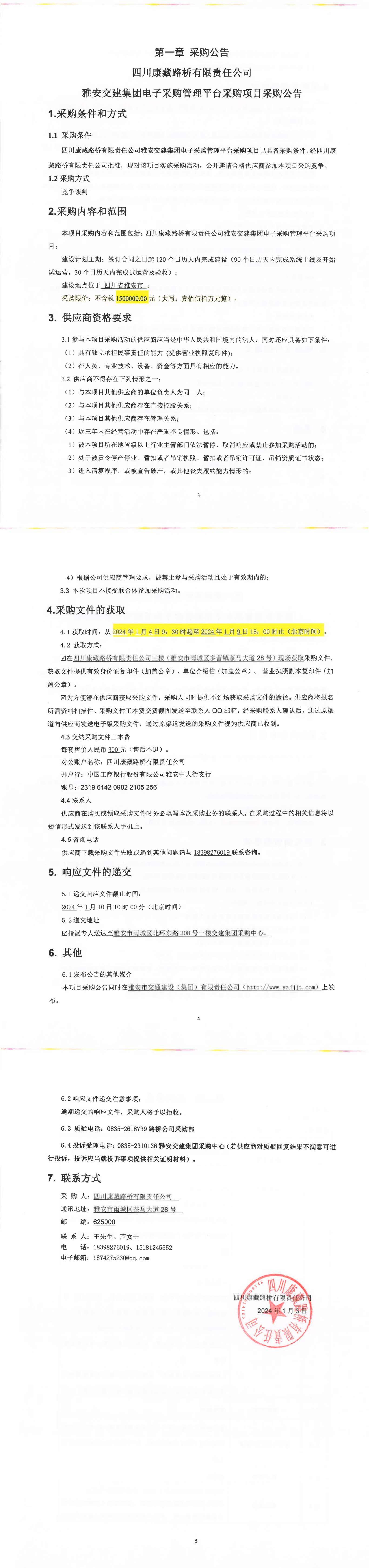 四川康藏路桥有限责任公司米兰体育-米兰(中国)官网 电子采购管理平台采购项目采购公告