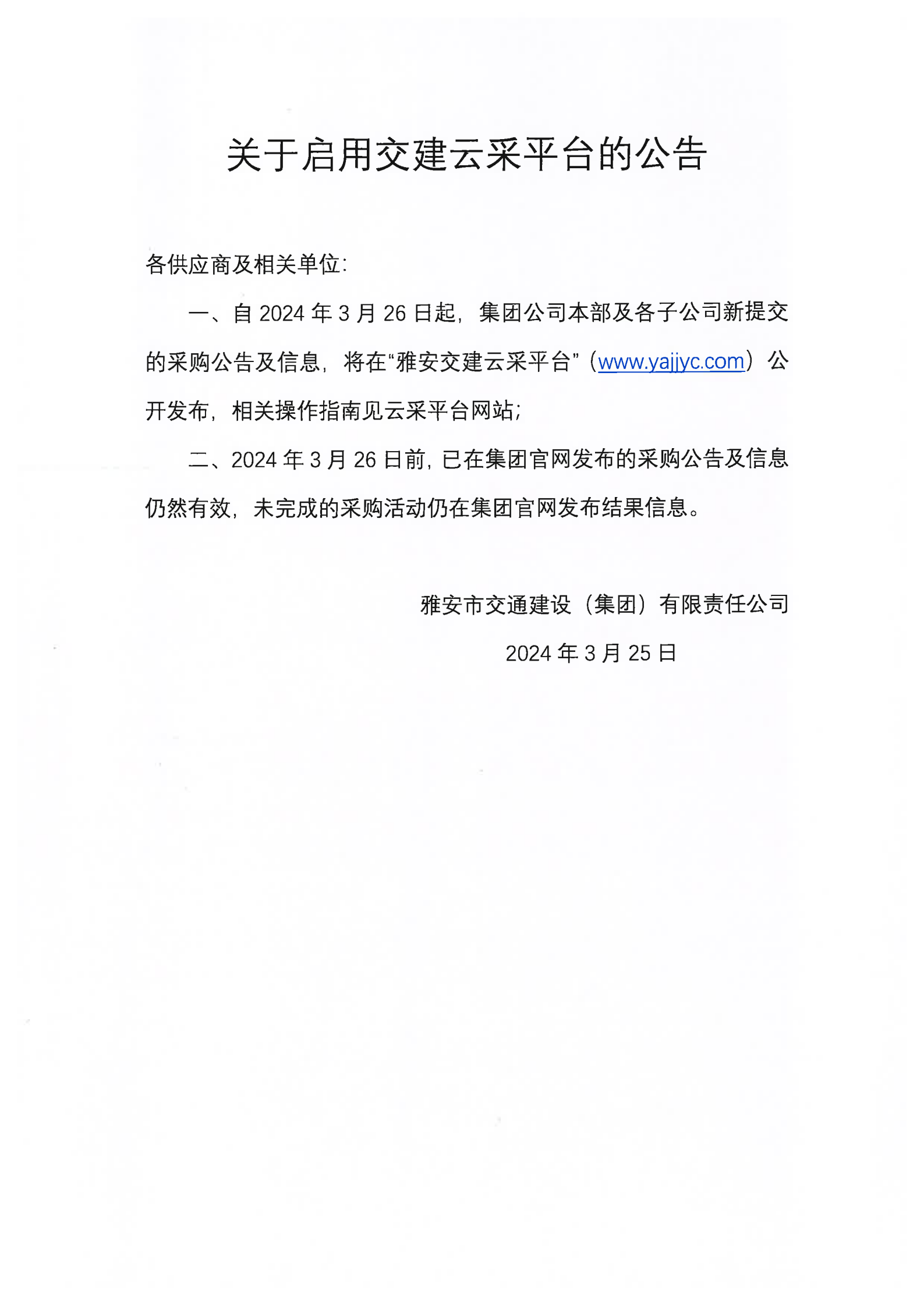 米兰体育-米兰(中国)官网 关于启用交建云采平台的公告
