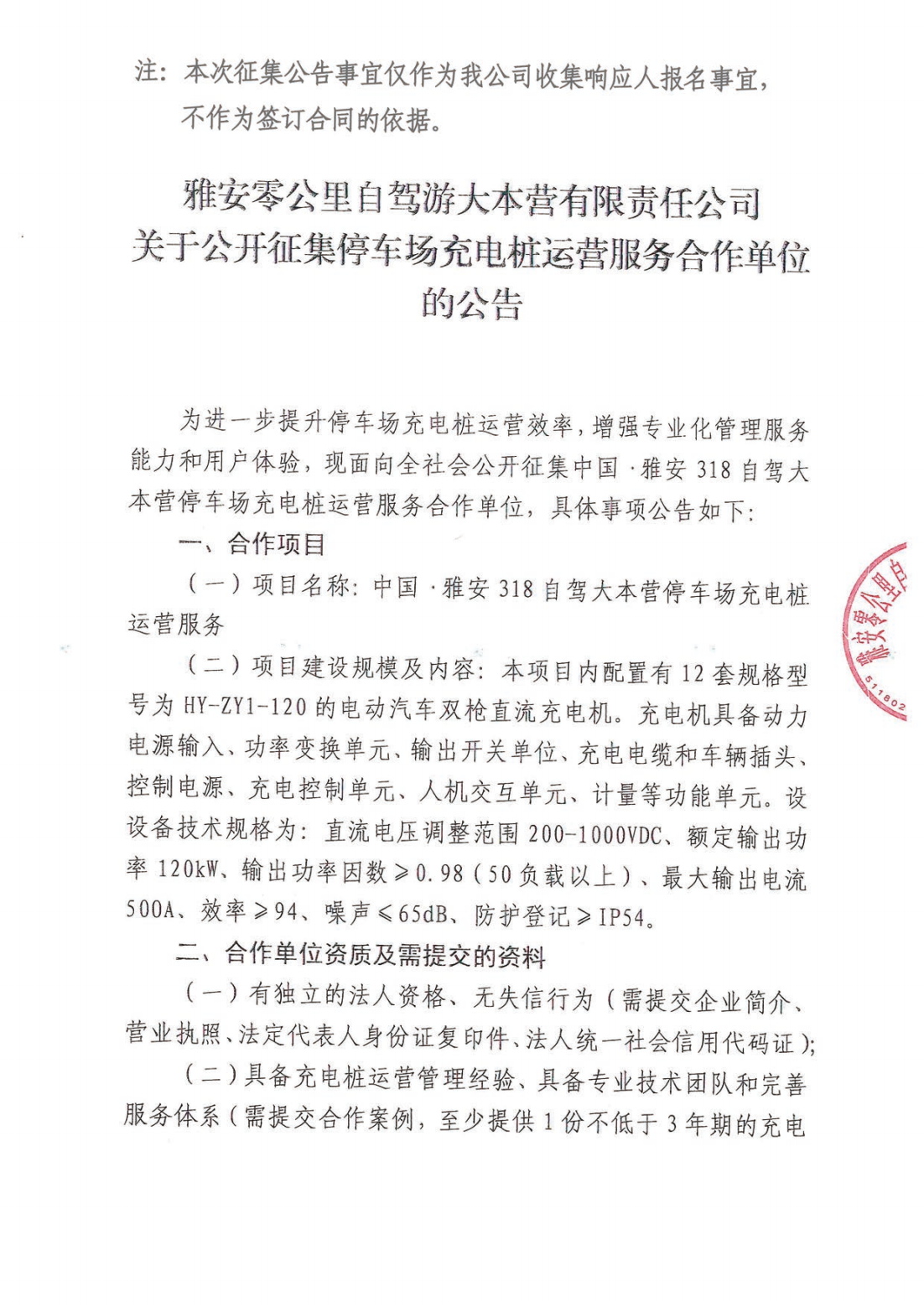 关于公开征集停车场充电桩运营服务合作单位的公告