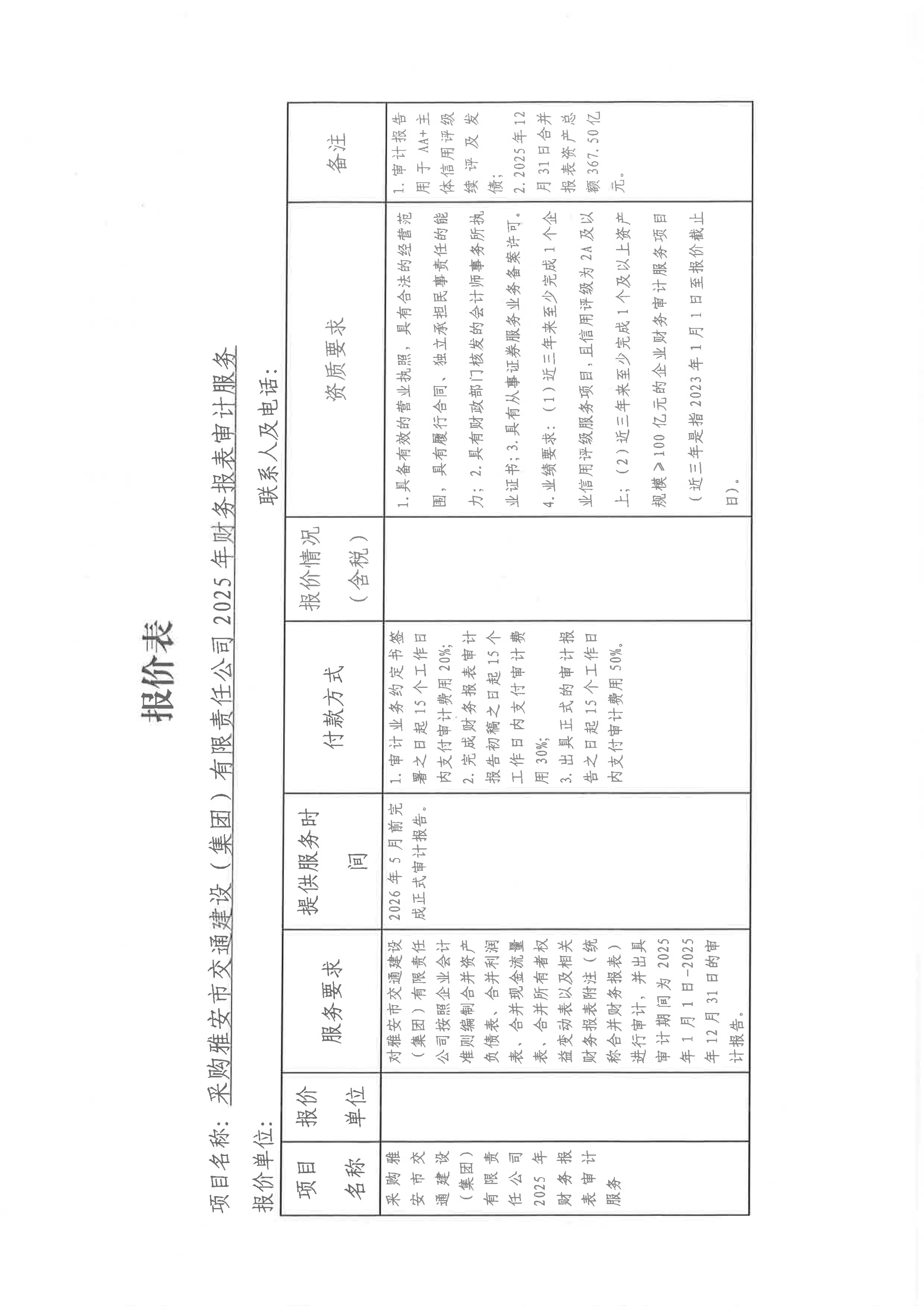 关于采购米兰体育-米兰(中国)官网 主体信用评级2025年财务报表审计服务限价的询价函