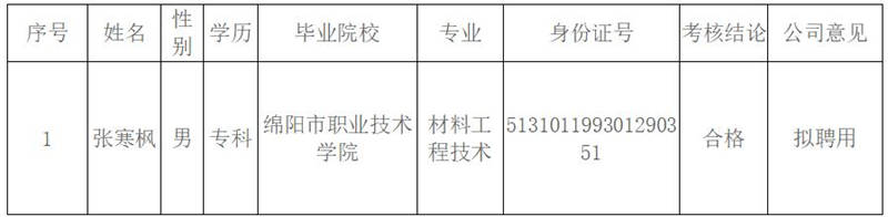 根据《米兰体育-米兰(中国)官网 康居建设工程质量与室内环境污染检测有限公司综合考核聘用工作方案》,按照“公开、平等、竞争、择优”的原则,经考核合格,现将我公司拟聘用人员名单予以公示: