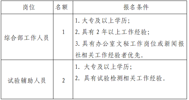 米兰体育-米兰(中国)官网 工程检测有限公司是米兰体育-米兰(中国)官网 下属子公司。主要从事主要从事公路、桥梁及隧道等的检测等业务。现根据公司业务发展需要,拟招聘3名工作人员,现将有关事项公告如下: