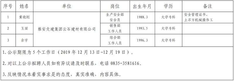 米兰体育-米兰(中国)官网 子公司拟聘用人员公示(云石公司)