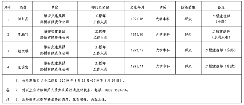 米兰体育-米兰(中国)官网 子公司拟聘用人员公示(路桥公司)