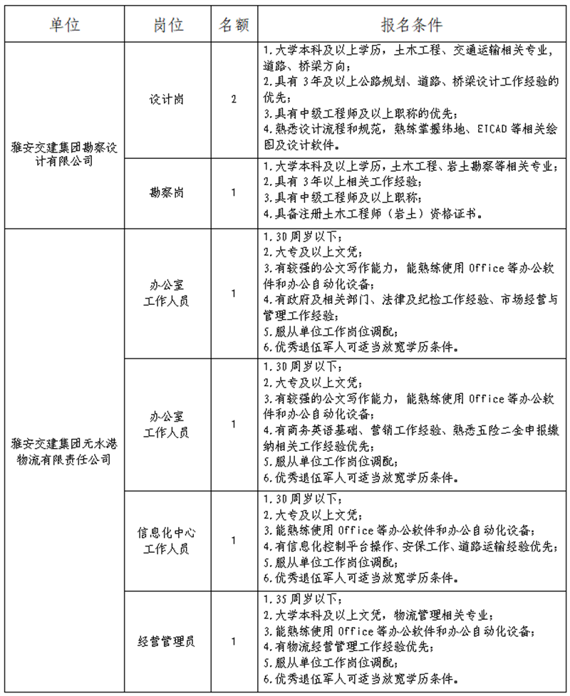 三、报名岗位、名额、条件