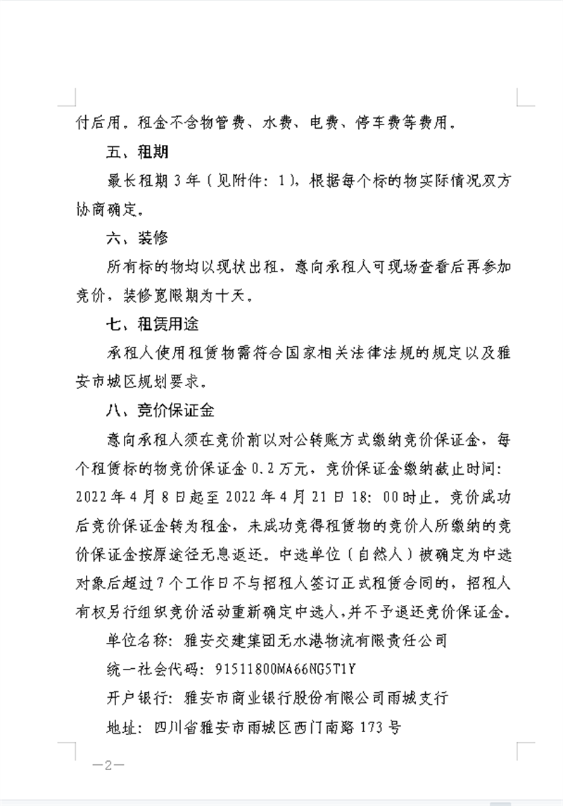 四川康藏路桥有限责任公司关于雅安市雨城区多营镇茶马大道28号一楼7#8#商铺招租结果公示