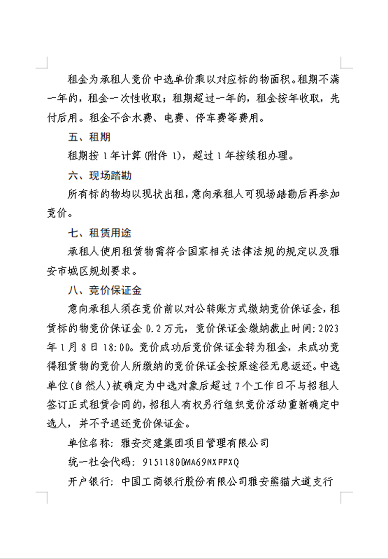 大兴开发公司关于雅安市城市综合停车场(大兴15-05地块)招租竞价结果的公示