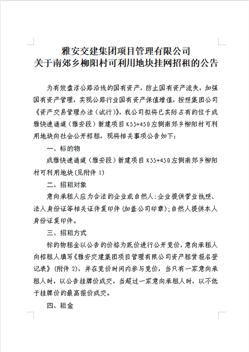 米兰体育-米兰(中国)官网 项目管理有限公司 关于南郊乡柳阳村可利用地块公开招租的公告资料