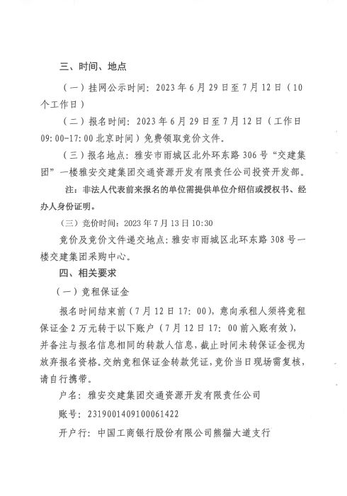 米兰体育-米兰(中国)官网 交通资源开发有限责任公司关于雅安市雨城区姚桥21-01、水中坝安置房西侧地块招租的公告