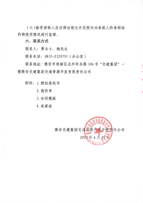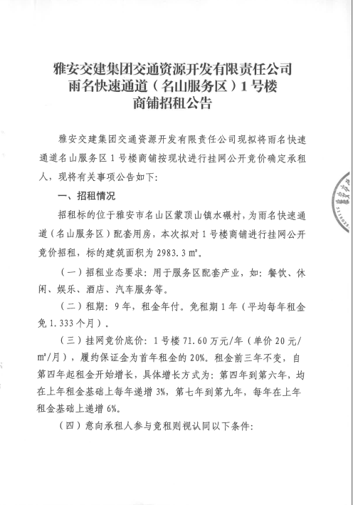 米兰体育-米兰(中国)官网 交通资源开发有限责任公司雨名快速通道名山服务区1号楼招租公告附件