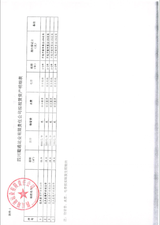 四川蜀通运业有限责任公司关于调整蜀通公司4间门面价格二次挂网的公告附件