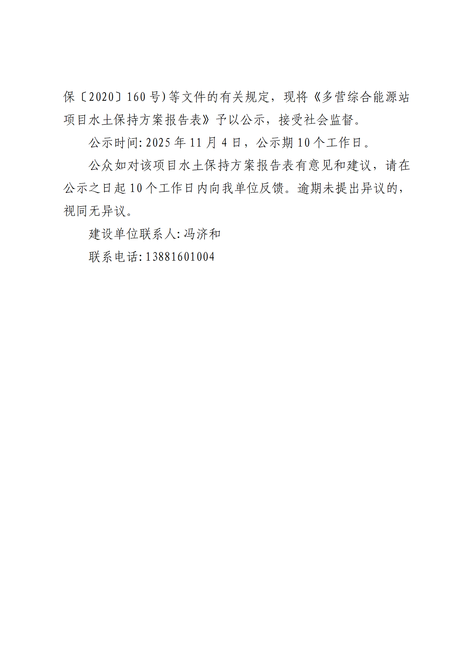 米兰体育-米兰(中国)官网 交通资源开发有限责任公司 关于《多营综合能源站项目水土保持报告表》的公示