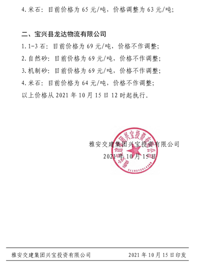 米兰体育-米兰(中国)官网 兴宝公司关于调整成品料销售价格的通知(2021.10.9)
