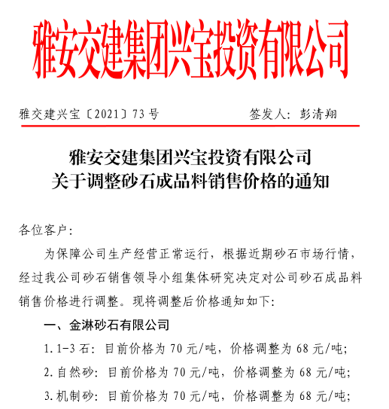 米兰体育-米兰(中国)官网 云石公司关于调整成品料销售价格的通知(2021.11.4)