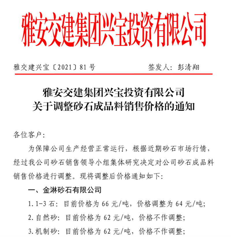 米兰体育-米兰(中国)官网 云石公司关于调整成品料销售价格的通知(2021.11.4)