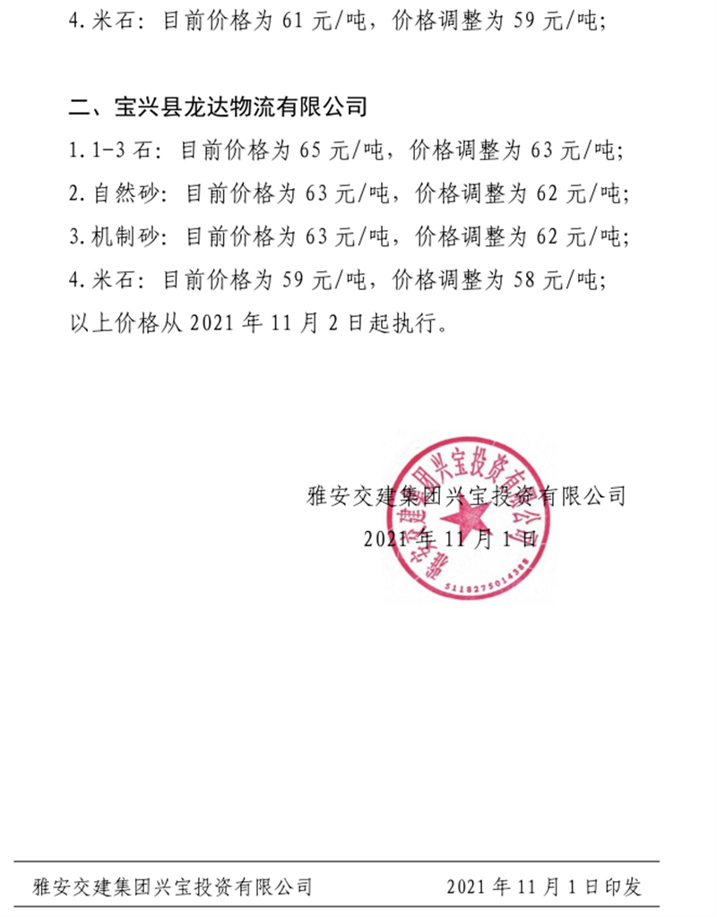 米兰体育-米兰(中国)官网 兴宝公司关于调整成品料销售价格的通知(2021.11.2)