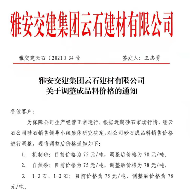 米兰体育-米兰(中国)官网 云石公司砂石骨料销售价格情况表(2021.6.24)