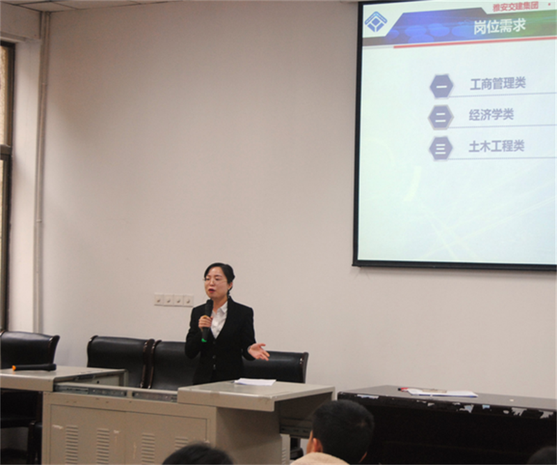 11月15日,由雅安市委、市政府主办,雅安市委组织部、雅安市委机构编制委员会办公室、雅安市人力资源和社会保障局承办的2018年“雅州英才”工程赴外招才引智高校行活动走进四川大学(望江校区),交建集团招聘代表参加了现场宣讲活动。