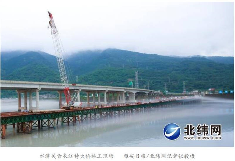 12月17日,在成雅快速通道(雅安段)控制性工程——水津关青衣江特大桥施工现场,此处可见一片热火朝天的景象。