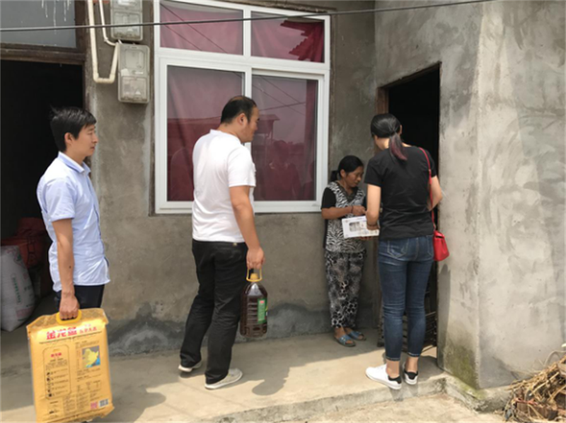 6月30日,在党的生日来临之际,公司副总经理高鹏同志带领,深入到帮扶的对岩镇殷家村三组村民家,开展“七一建党节”走访慰问活动。向贫困户送去了大米、食用油、牛奶等慰问品,并进行了入户走访座谈。