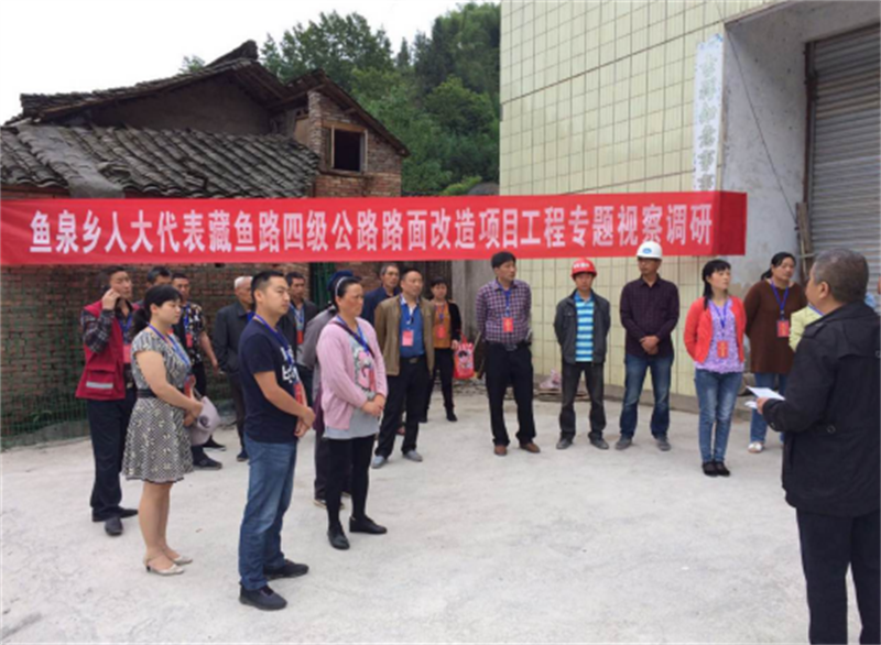 近日,天全县鱼泉乡人大代表对米兰体育-米兰(中国)官网 路桥公司承建的天全县藏鱼路(藏鱼桥至鱼泉乡)四级公路路面改造工程项目进行专题视察调研。调研小组首先参观了该项目施工现场,随后听取公司技术负责人黄怀璟对工程概况、工程进度、完成工程量以及近期工程计划的详细汇报。目前,该项目已完成主体工程,剩余路缘石、水沟、波形护栏、院坝与公路的衔接等项目正在加快推进,下一步项目部将按照施工计划保质保量完成各项任务。