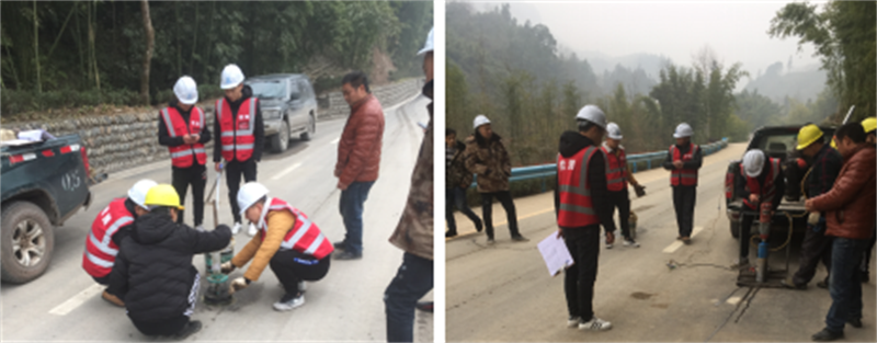1月25日,宝兴县公路养护段组织第三方试验检测机构对路桥公司承建的“罗家村一、四、七组通组公路改(扩)建工程(K0+000~K0+800段)路面铺筑及沿线边沟、 交安工程”进行交工验收外业检测。宝兴县发改局、纪检组以及参建监理、设计、施工单位代表一同前往该项目现场进行交工验收。