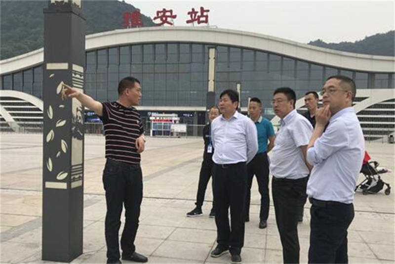 在雅安火车站站前广场,朱涛一行详细了解了行李滑道建设项目、地下停车场、安全提示标识等方面的情况,并听取了简智勇就相关事宜的汇报。