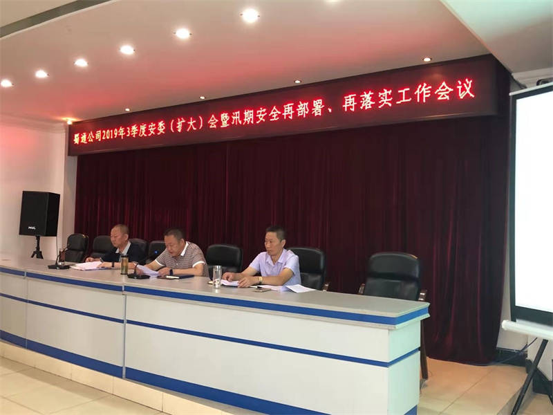 2019年7月23日,蜀通公司党委副书记、总经理、安委会主任余辉在公司机关会议室主持召开了2019年三季度安委(扩大)会暨汛期安全工作再部署、再落实工作会议。公司安委会成员及各基层安全二、三责任人共计40人参加此次会议。