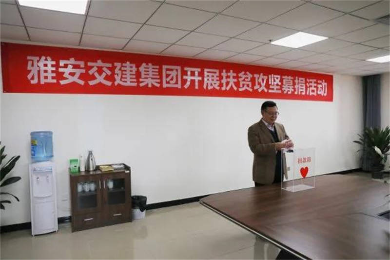 三是扶产业、送资金,倾心倾力帮扶。参加扶贫产品“以购代捐”“以购代扶”行动,积极对接扶贫农产品供需信息,采购扶贫产品22.54万元,受益县达33个;扶贫日期间,组织现场募捐活动,集团领导班子成员带头献爱心,未能通过现场捐赠的员工,通过雅安市慈善总会微信公众号、“中国社会扶贫网”爱心平台等网络平台进行网络捐赠,截至10月19日12时,共募集捐款近4万元。此外,交建资产公司党支部和雨名快通临时党支部联合开展脱贫攻坚主题党日活动,募得资金2.2万元,现场全额转交雨城区青江街道党工委,全部用于金鸡村3户建档立卡贫困户房屋改造。