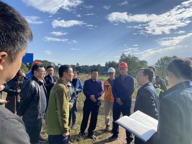 邹瑾一行先后实地踏勘全线三个标段的施工现场,对照规划图纸了解施工进展情况。