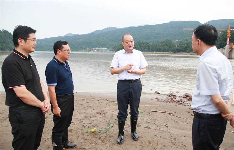 8月19日下午,市委书记兰开驰赴雨城区草坝镇青衣江大桥,察看交建集团抗洪抢险救灾情况,慰问项目一线抢险救灾人员。