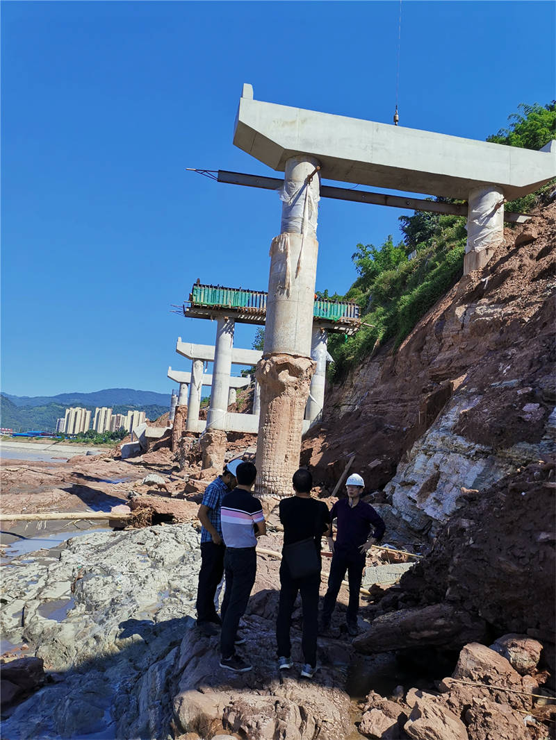 8月26日,项目公司邀请西南交通大学结构专家到省道104线草坝至姚桥段、草坝青衣江大桥(茶地坎码头渡改桥)、多营青衣江大桥(搭沟漩码头渡改桥)等涉水工程项目进行现场踏勘,检查桥梁墩台、防护工程结构等情况,并就相关项目安全状况及结构物的加固提出了专业意见。