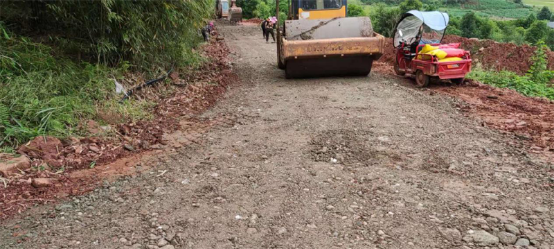 在路桥公司承接的“世界银行贷款芦山地震灾后恢复重建天全县始阳至新华农村公路”项目天全县新华乡柏树村至永安村段,其村道路面结构层差,路基窄,雨水多,晴通雨阻,对本地农产品外运造成很大困扰,严重影响了民众的生产生活。为积极响应市委市政府加快雅安市“四好农村路”的部署安排,解决当地村民出行难、本土农产品外销滞后等问题,路桥公司天全项目部主动作为,在推进项目部主体建设的同时,坚持以问题为导向,采用“始新路”施工现场自拌水稳料,为村民铺设了一段长临时水稳路面,方便广大村民顺利出行,促进当地农产品物资交流。