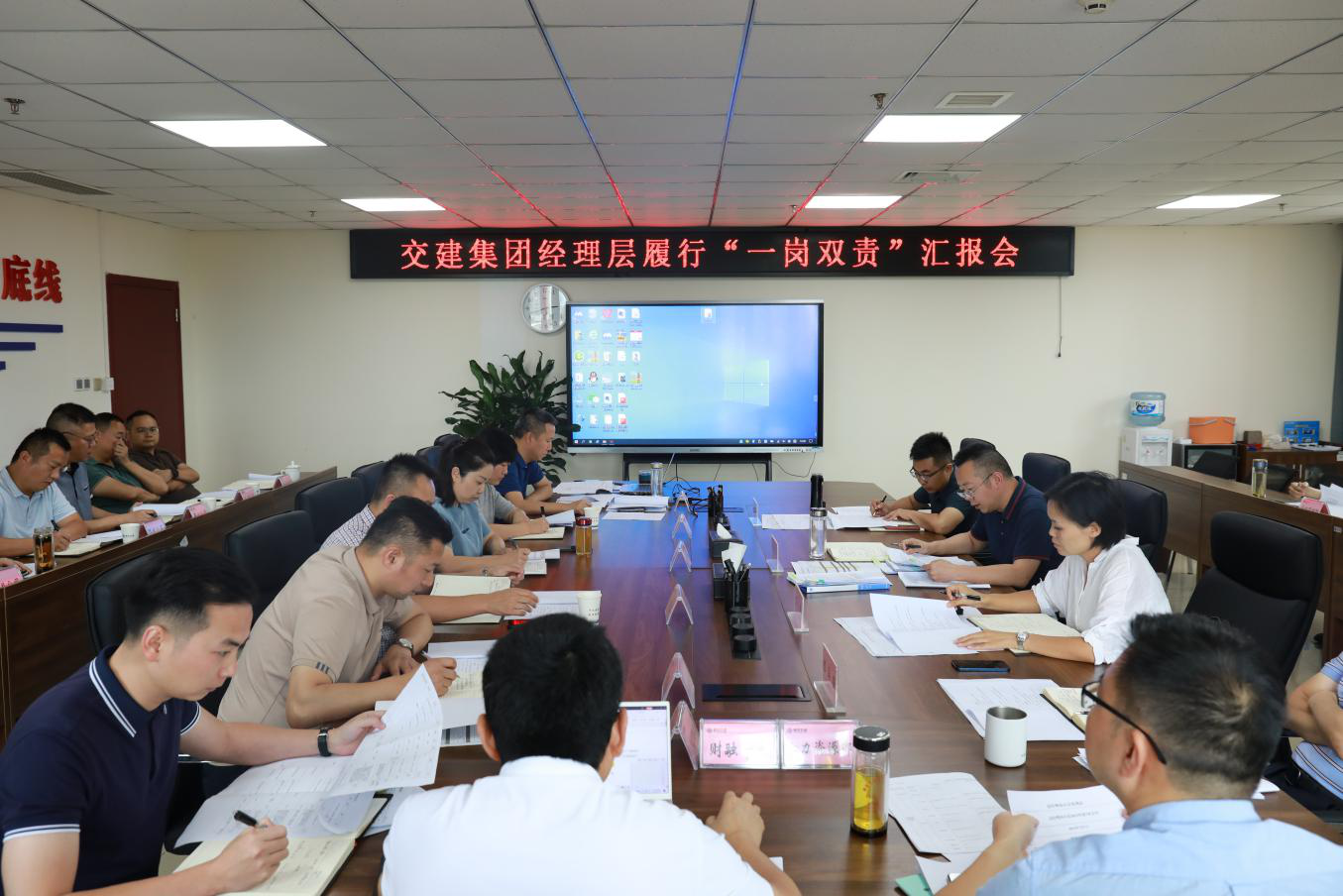 为进一步增强集团经营班子成员自觉履行“一岗双责”责任意识,近日,交建集团召开经营班子成员履行“一岗双责”情况专题汇报会,传达学习市委五届三次全会精神,班子成员结合分管任务逐一汇报履行全面从严治党、党风廉洁建设、安全环保“一岗双责”工作情况及下步工作打算。
