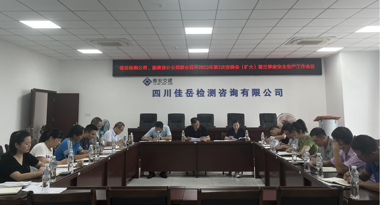 为进一步落实我司安全生产主体主责,提高思想认识,以更加坚决的态度和防护措施,切实加强管理公司安全生产工作,9月7日,四川佳岳检测咨询有限公司、四川西康公路规划勘察设计有限公司召开2023年三季度安委会(扩大)会议暨安全工作会议,传达学习近期安全生产相关文件精神,通报安全生产工作开展情况,专题对安全生产隐患大排查大整治专项行动再安排。
