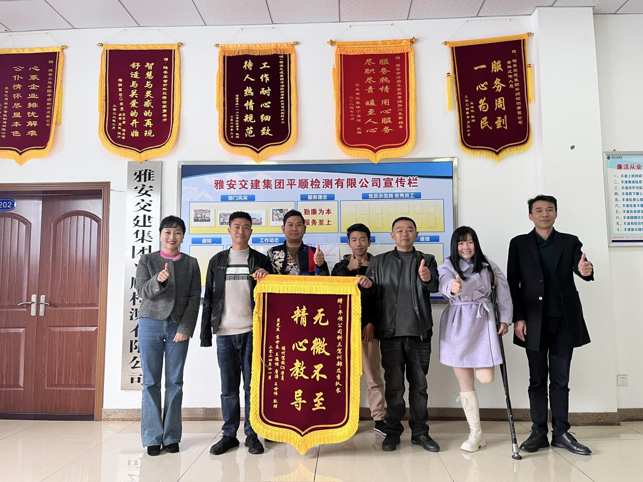 驾驶汽车在道路上行驶对于普通人来说是一件寻常小事,然而对于残疾人士来说,圆“驾驶梦”并不是件轻易的事。11月21日,雅州驾校和5名已经考取驾驶证的残疾考生将一面印有“无微不至 精心教导”字样的锦旗送到了平顺公司,向平顺公司工作人员为他们提供热情、周到的服务致以真挚感谢。