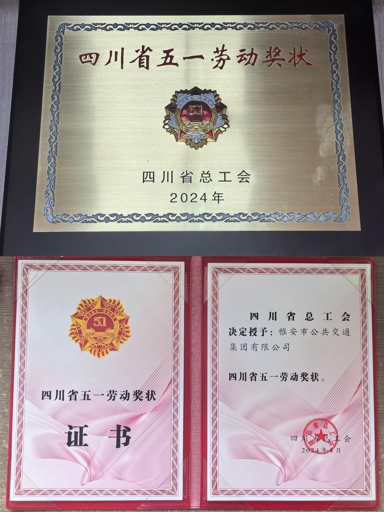 公交公司荣获2024年“四川省五一劳动奖状”。