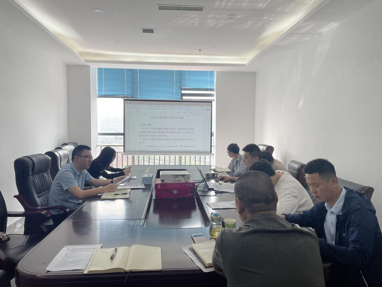 6月5日上午,公司总经理李强军组织干部职工学习《国有企业管理人员处分条例》。李强军详细从出台背景、总体思路、适用范围等方面进行解读和指导。